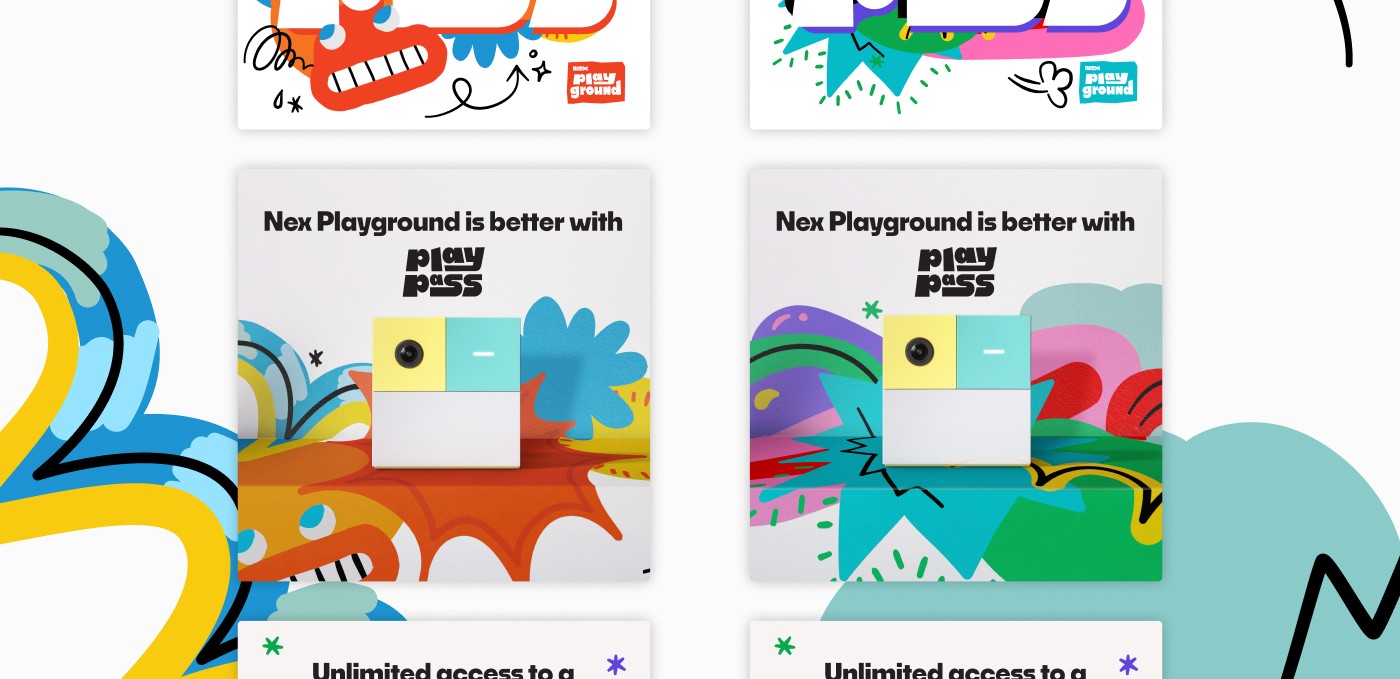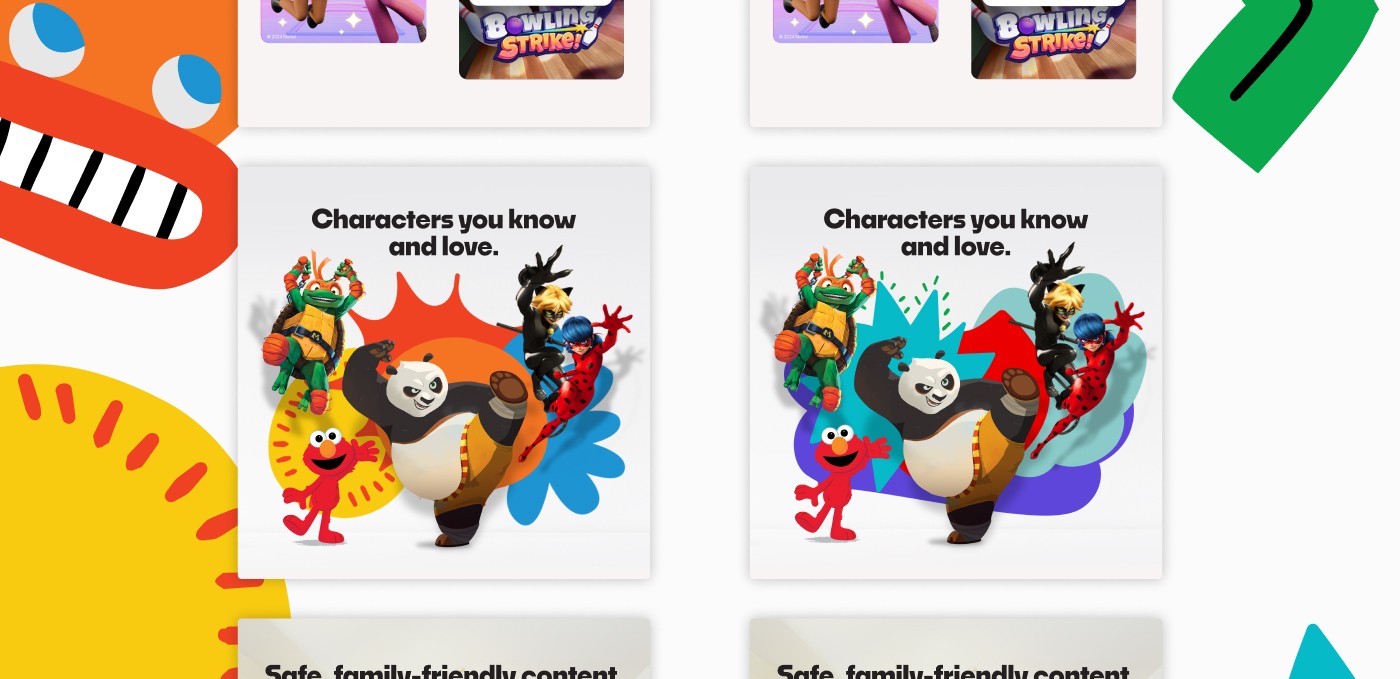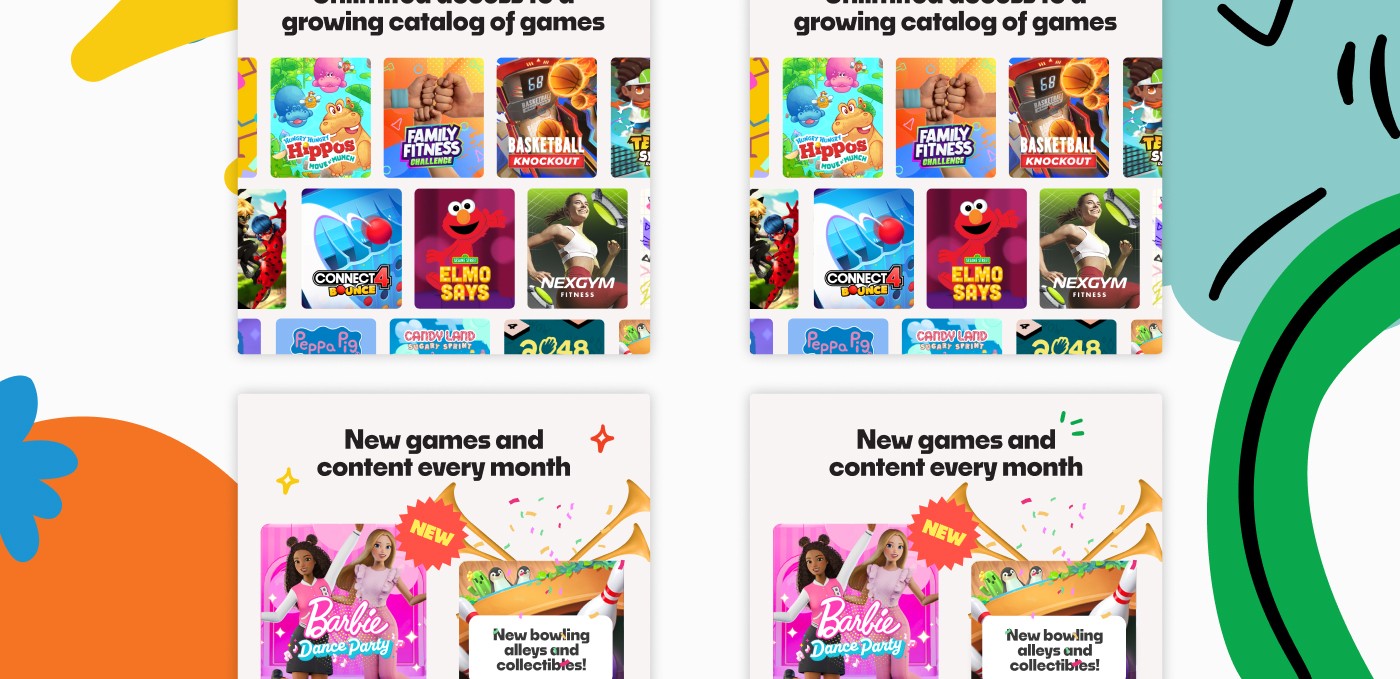The existing visuals didn’t tell a cohesive story—they were visually mismatched, message-light, and inconsistent from retailer to retailer. For Play Pass specifically, the available key art wasn’t designed to be broken apart, making it difficult to represent the expanding value it brings to Playground.